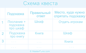 Пустую схему квеста вы можете скачать по ссылке «Схема квеста» и использовать для своего квеста.