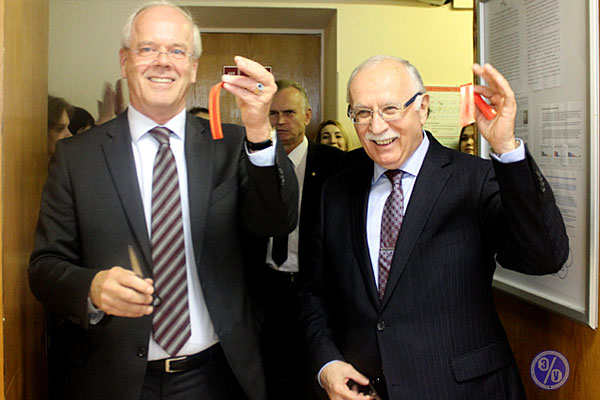 Ректор БГЭУ В.Н.Шимов и Посол Германии в Беларуси П.Деттмар на открытии Центра немецкого языка, экономики и культуры в БГЭУ