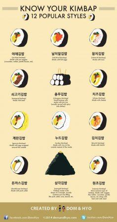 12 видов кимпаба – корейских роллов